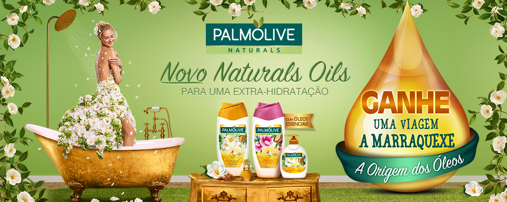 Ganha o participante que enviar a frase mais criativa, e que inclua as palavras "Palmolive", "Óleos" e "Naturals".